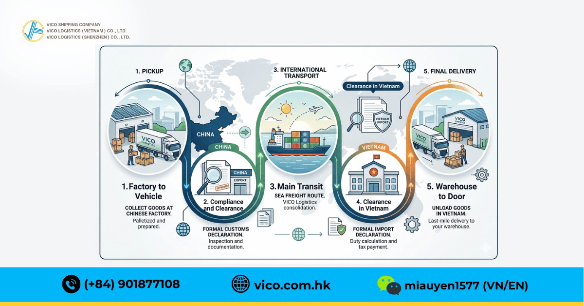 When you book door to door China to Vietnam with VICO, here is the roadmap: