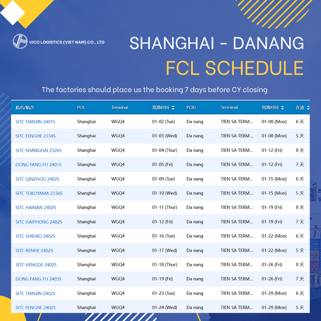 February, WHL will further refine its routing based on actual cargo volume, potentially affecting Shekou-Danang transit times again. We recommend checking the updated WHL schedule regularly for the latest information.