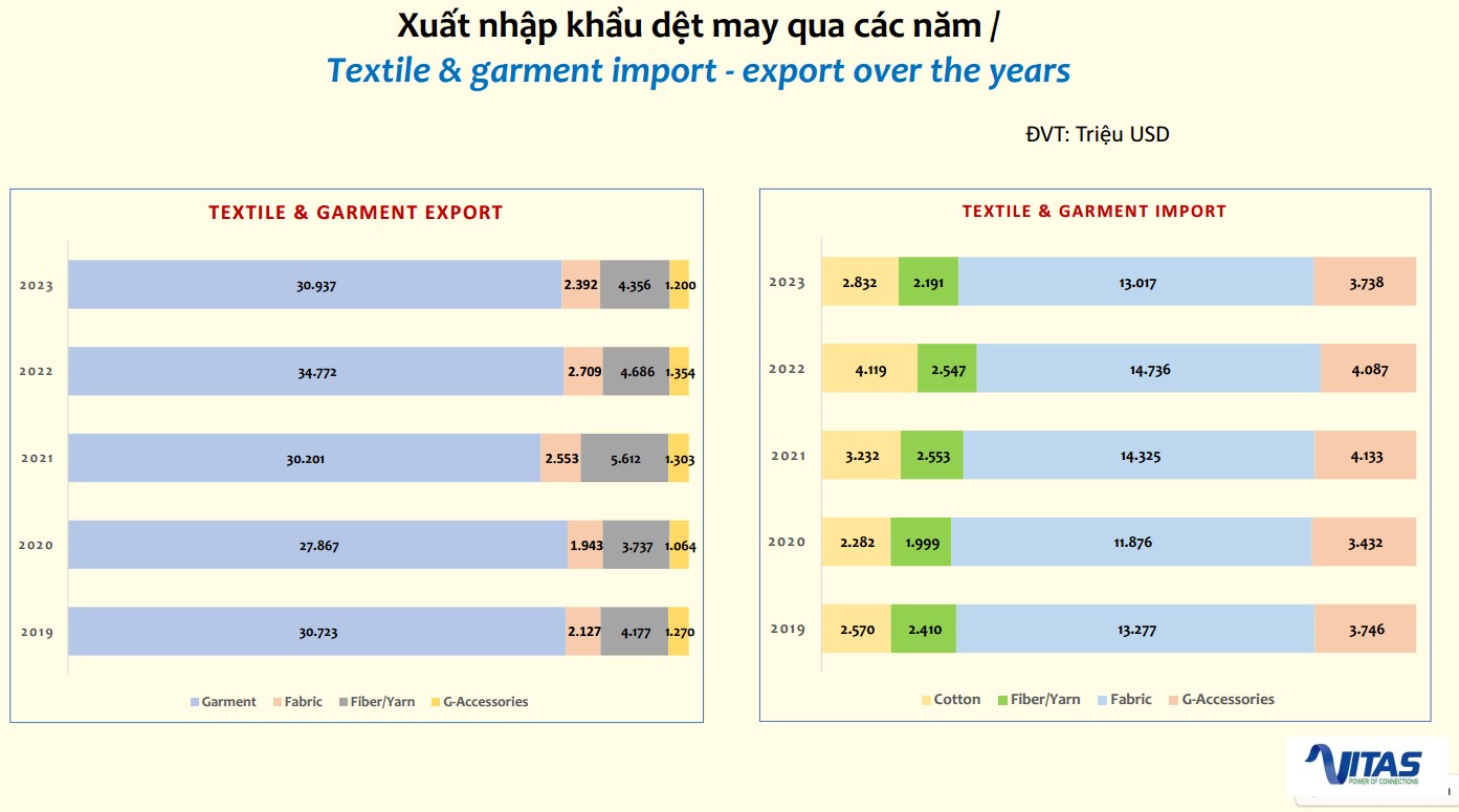越南已成为全球第三大纺织品出口国,仅次于中国和孟加拉国。据越南国际运输协会(VITAS)2024 年报告显示,越南纺织品年营收超 400 亿美元,其中对欧盟出口占比显著。为跟上行业变革节奏,物流服务需同步升级,以满足溯源、合规与快速交付的需求。